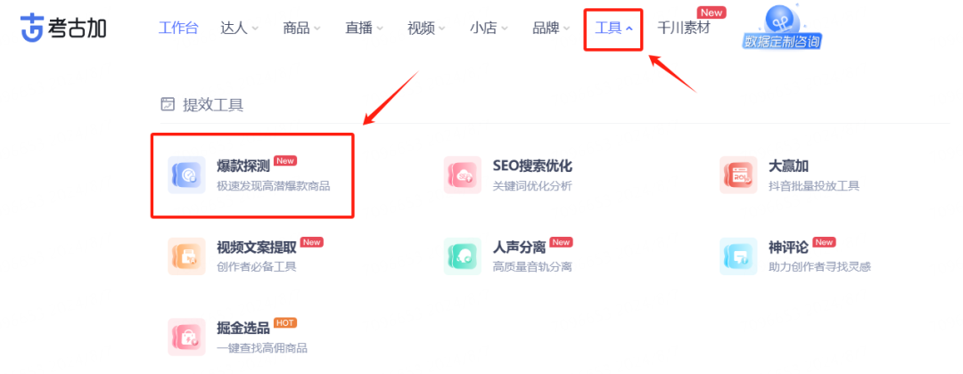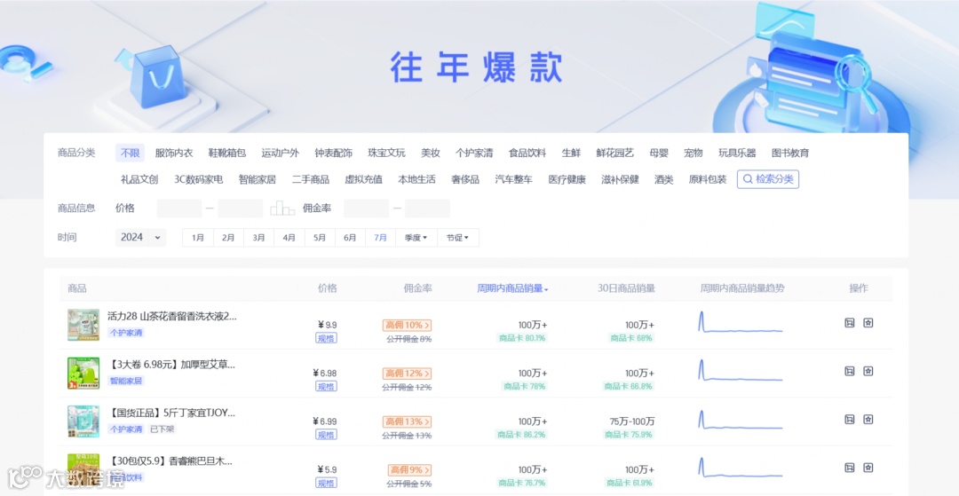 往年爆款:发掘去年同期热门商品;爆款探测:发掘当季潜力爆品;若能将二者巧妙结合使用,数据相辅相成,即可实现选品即爆品!