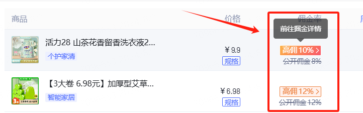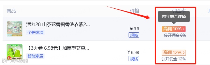同时,往年爆款与掘金选品联动,支持一键添加高佣品至橱窗,点击商品佣金可直接跳转掘金界面: