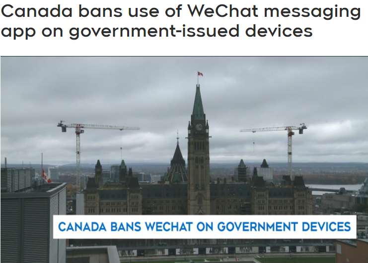 就在周一,加拿大财政委员会主席Anita Anand宣布了一项“基于风险”的禁令,表示加拿大将禁止在任何政府发放的移动设备上使用即时通讯应用wechat。