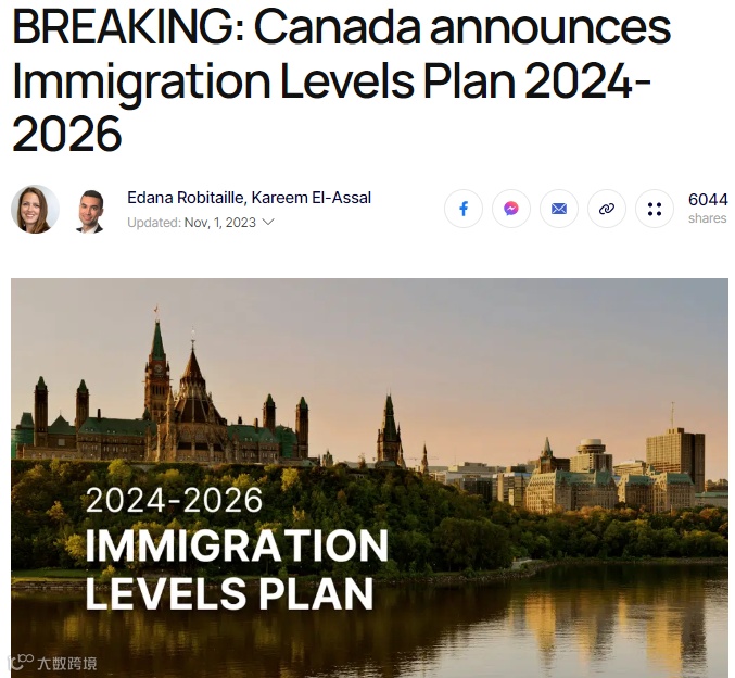 2022年,加拿大以43.7万人次打破了新移民的记录,2023年永久居民的目标是46.5万人。