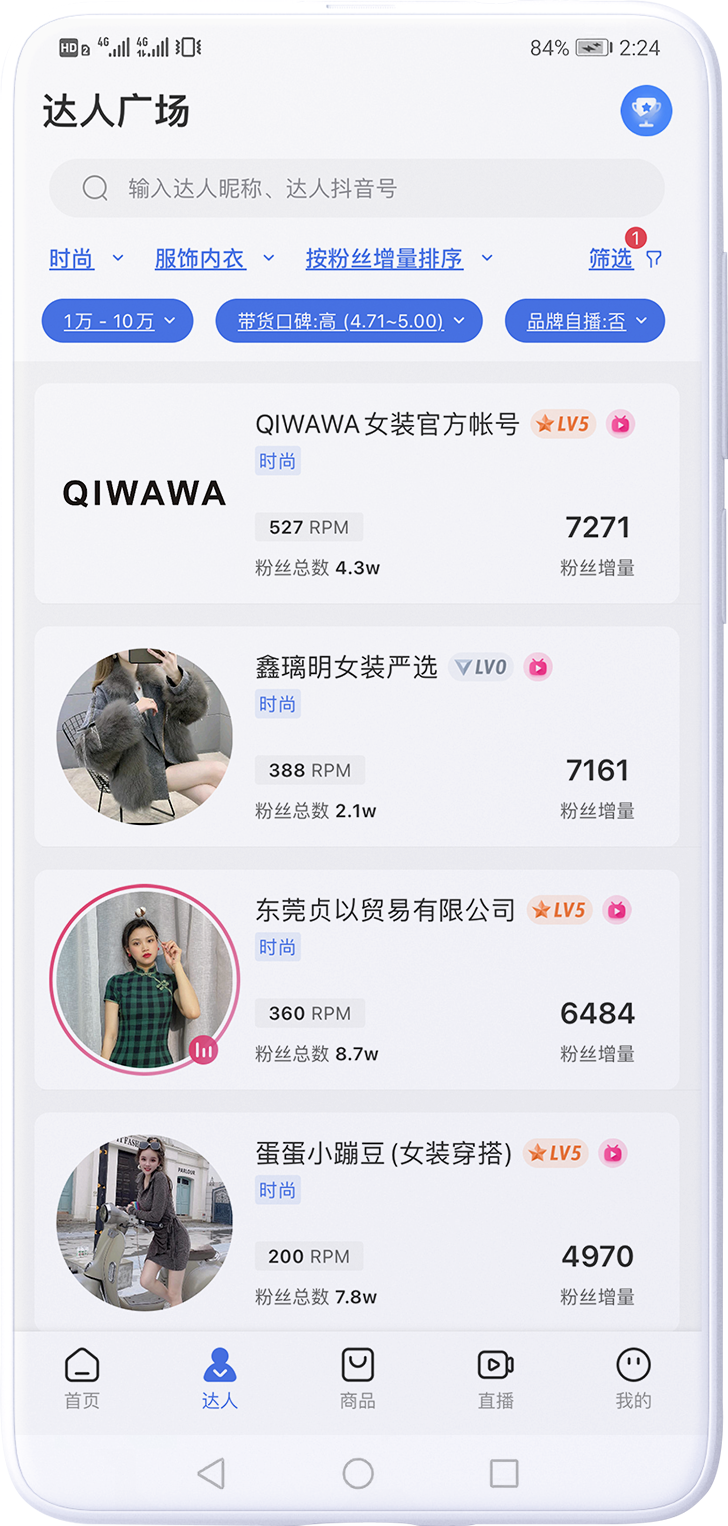 多维度发现优质达人,快速对标学习,全方位分析达人历史数据,带货能力一目了然。