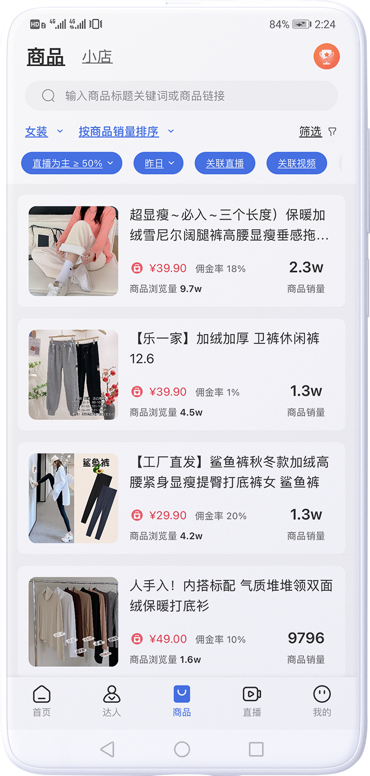 实时还原直播间流量趋势、带货趋势,发现直播热销商品,优化直播选品策略。
