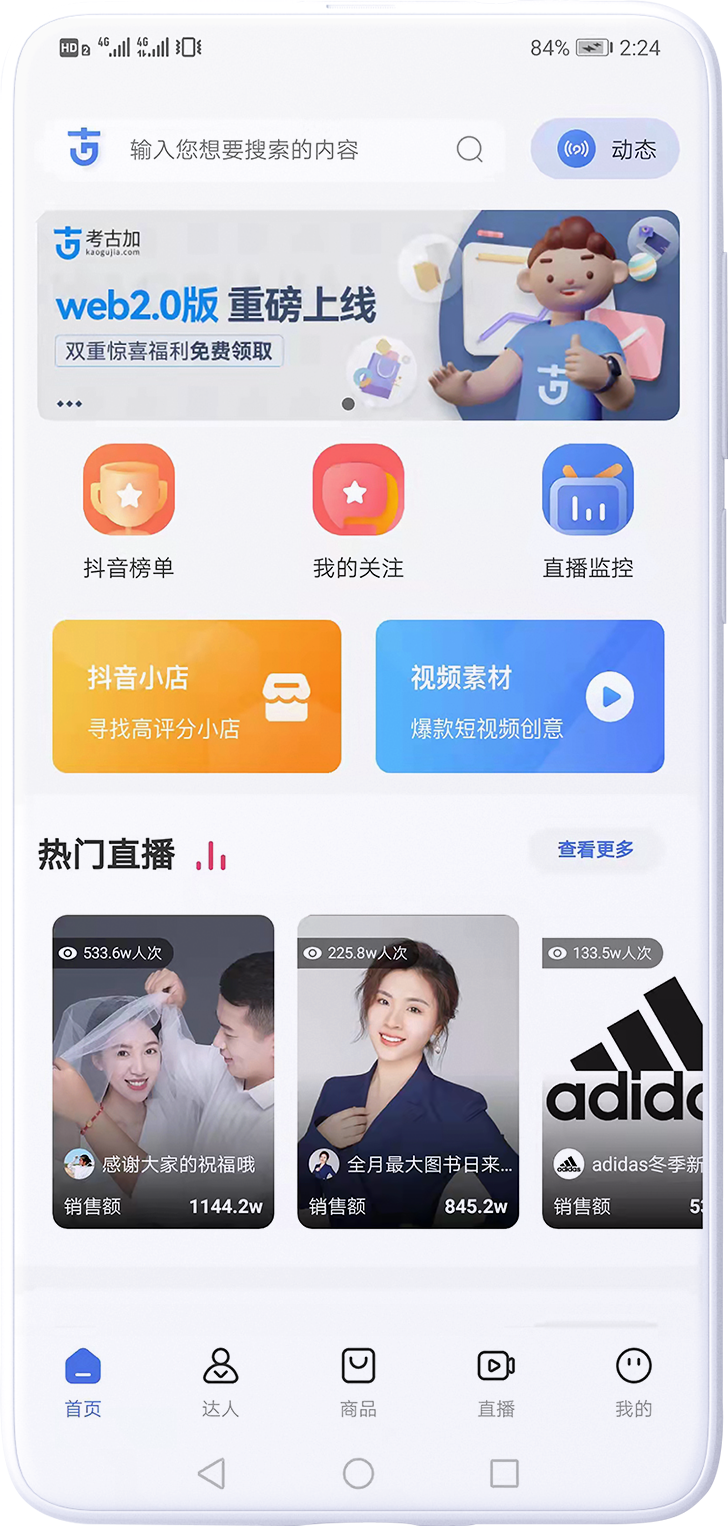 无论你是从事直播带货电商行业,还是商家品牌方,或是短视频带货小白,考古加 App 都为你提供了非常适合的数据查询功能。