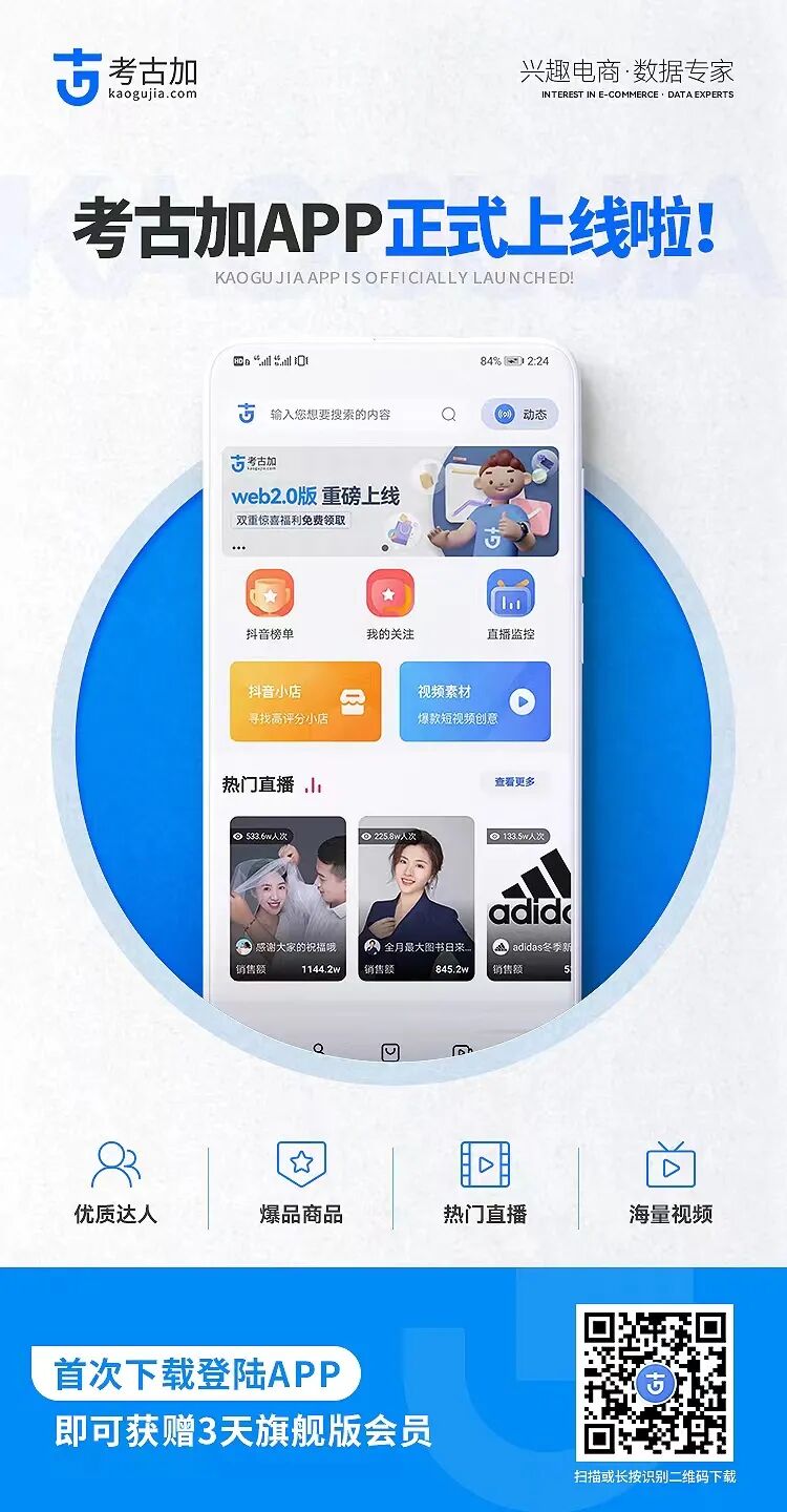 作为抖音兴趣电商专业数据分析工具,考古加数据自上线以来深受广大抖音用户的喜爱和推崇。