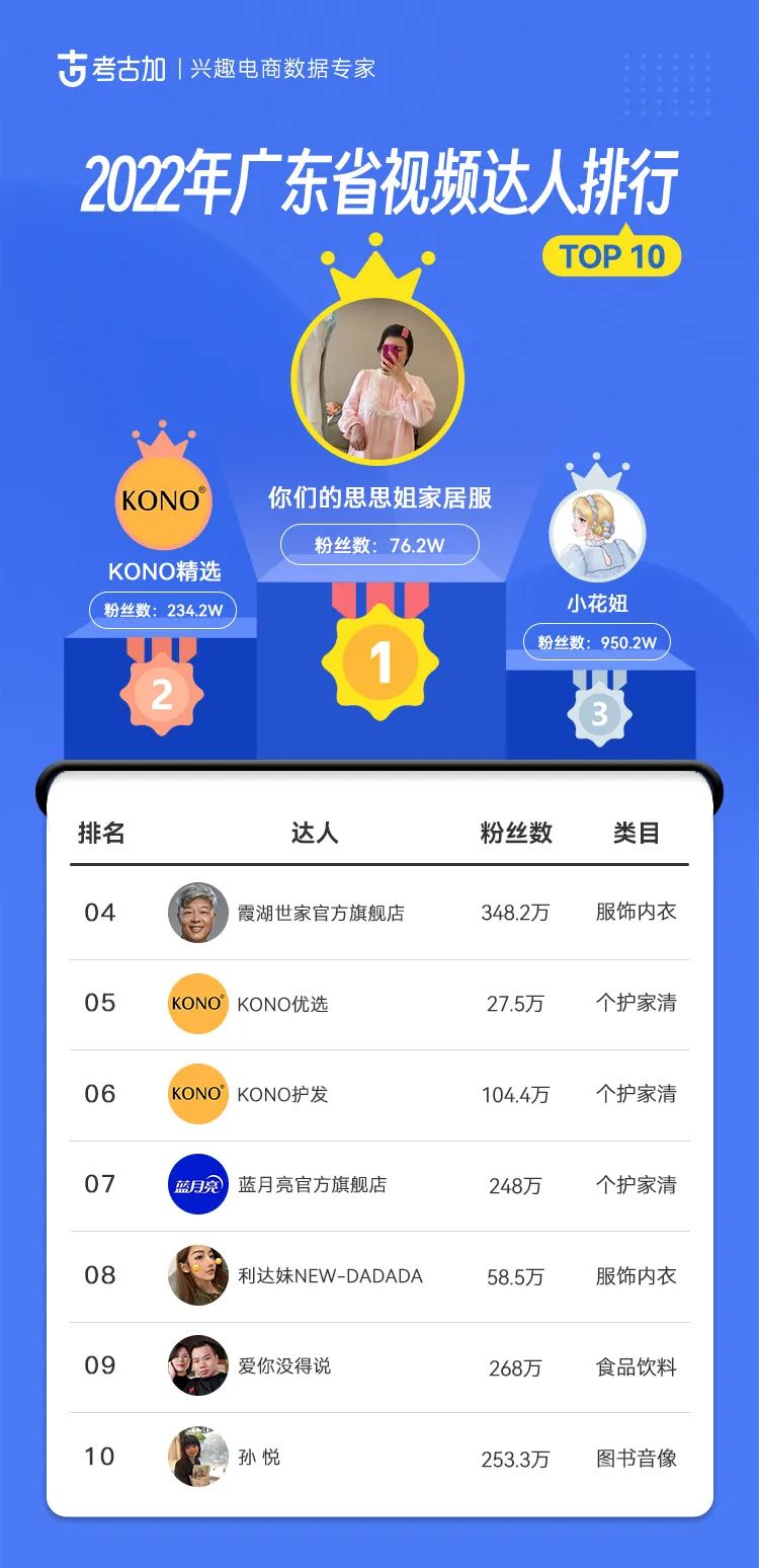 小古精心为“加人们”整理了2022广东省抖音电商带货的核心数据,详见下图。
