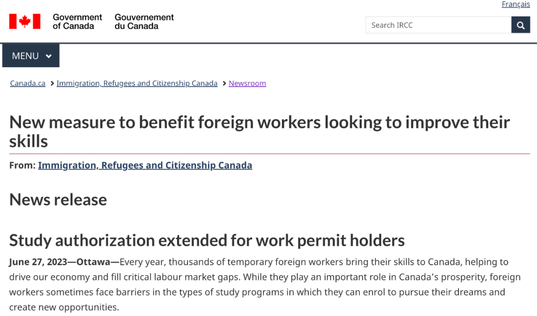 就在刚刚,加拿大移民部长肖恩·弗雷泽(Sean Fraser)宣布了一项新的临时措施,该措施将取消持有工签人员在没有学习许可的情况下参加学习项目的时间限制。