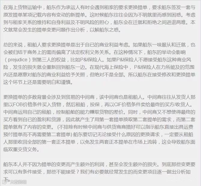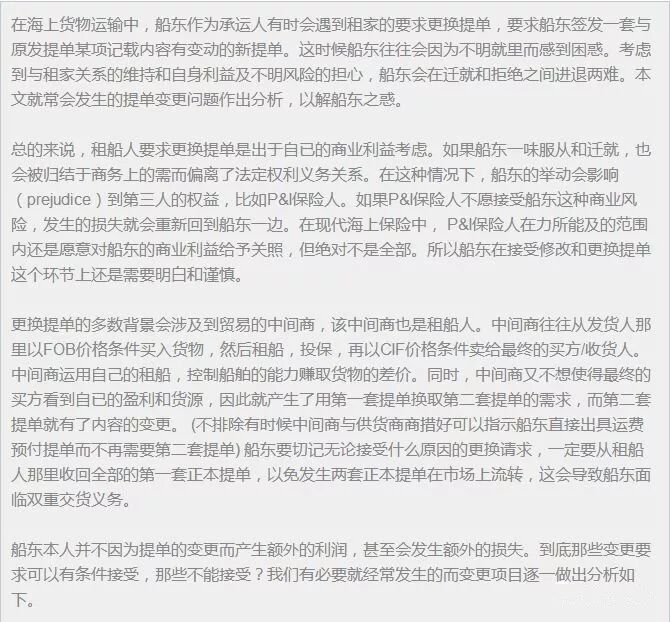 发货港一般会反映货物真实产地,除非买卖合同另有规定。在国际贸易合同中,货物的产地是条件条款,一旦卖方违背,买方知情后有权利解除合同和索赔损失。如果卖方倒闭或财务状况不良,买方会选择扣押签发不实提单的船舶,对船东提起侵权之诉。侵权之诉会打破海运合同中保护承运人的责任免除,责任限制和诉讼时效规定,承运人会丧失P&I的保障。所以更换提单中的实际装货港是船东坚决不可接受的。