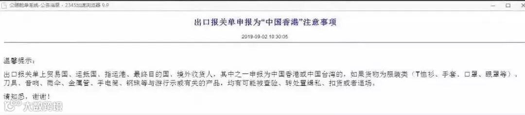 因为众所周知的原因,近期,海关对出口香港、台湾的部分货物进行严查!