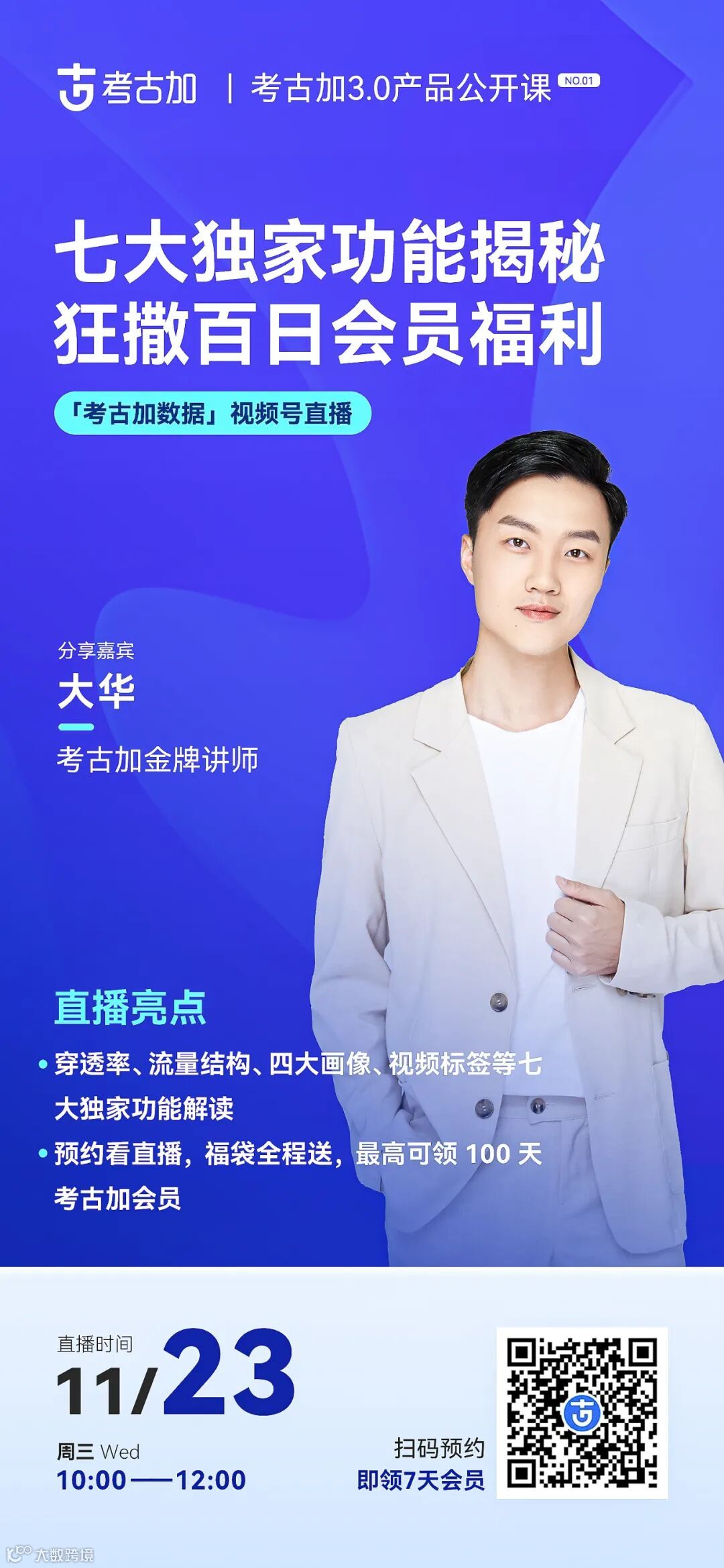 为了让大家更快掌握这些新功能,在年底借力实现销量与流量双增长,我们特意邀请到考古加金牌讲师大华,于本周三上午10点在考古加数据视频号直播。