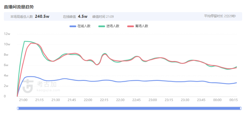 而@东方甄选美丽生活 在10月26日销售额爆发的大场,这场直播一共持续了15小时46分钟,多个主播轮番上阵。据考古加数据显示,该场直播平均在线人数超过3万人,有985.3万人次看过此直播,最高同时有6.4万人观看直播,直播全程人气火爆。