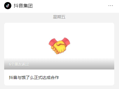 抖音牵手饿了么,这是一步三赢的棋。这样的服务体系如果真正实现,毫无疑问将是一次打破行业壁垒的创新升级,也是下一个的风口所在。