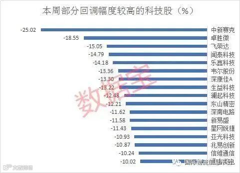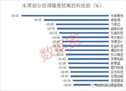 受此消息影响,上周科技股出现大面积回调,主力资金大幅出逃。万得云计算指数下跌6.54%、半导体指数下跌4.66%、芯片指数下跌4.46%,韦尔股份、兆易创新、卓胜微、通富微电等个股本周跌幅超过10%,中兴通讯、汇顶科技、中科曙光跌幅超过5%。