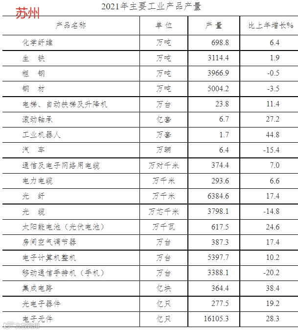苏州的主要工业品包括光纤、电子计算机、电子元件、集成电路、智能手机,其中产量下滑最多的是智能手机、汽车。