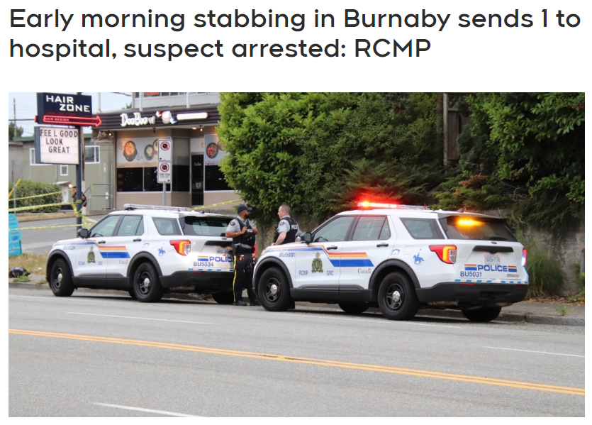 先来说说最新的捅人案,今天凌晨2点才刚过,本拿比警方就被召集起来了,有民众通报说在Kingsway和Griffiths Drive附近发现一名男子,身上有刀伤!