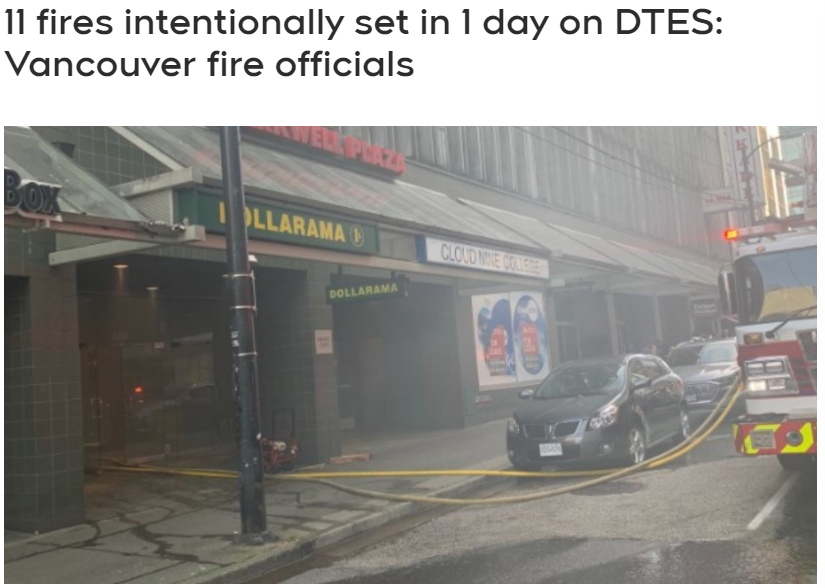 本周三(6月7日),温哥华市中心东区在短短几个小时之内,被恶意纵火11次!