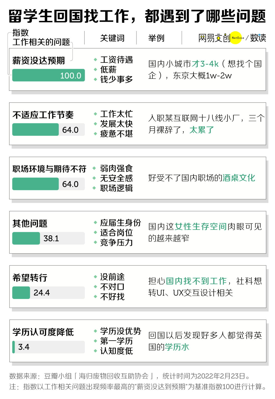 豆瓣上,几万名留学生聚集在一个名为「海归废物回收互助协会」的小组里(以下简称「海废」小组),吐槽着自己遇到的求职问题,其中不乏美国常春藤、英国 G5 这样的世界排名前百的名校毕业生。