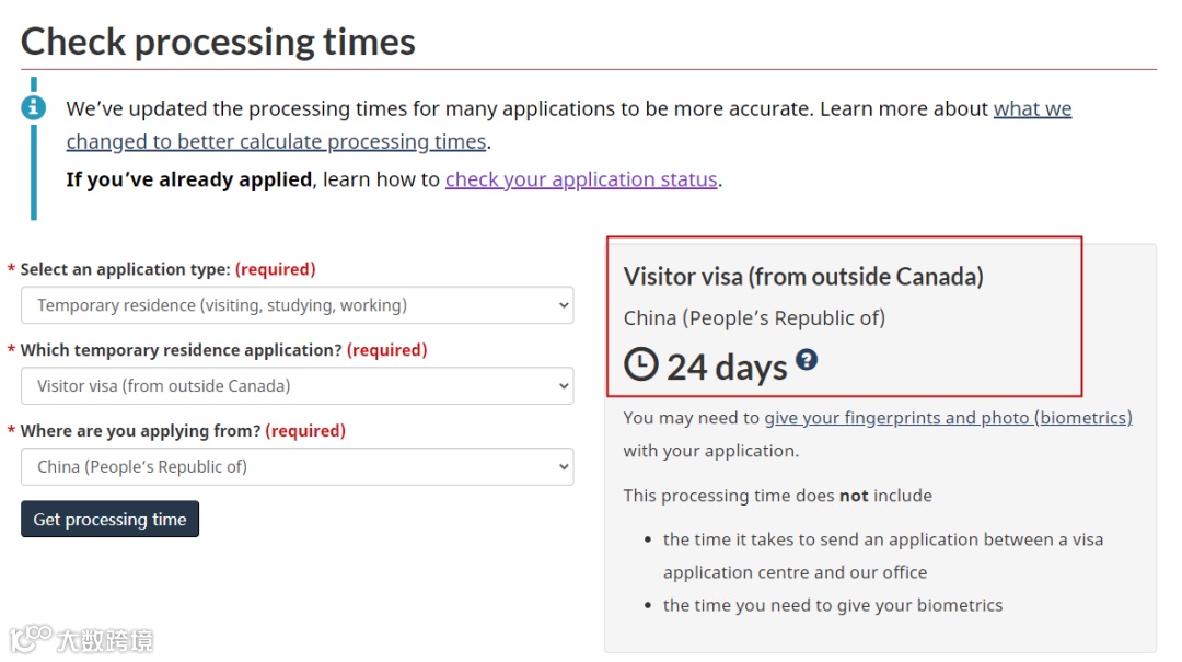 根据最新数据,加拿大境外临时签证的批准时间大大提高。中国境内申请的速度大幅提升,直接提速到只需要24天!