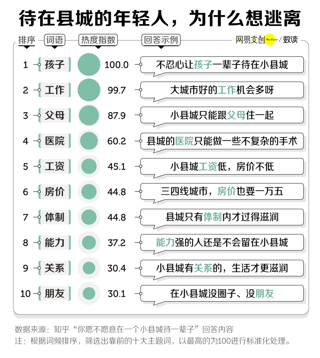 在知乎讨论“你愿不愿意在一个小县城待一辈子”里,许多人提到了教育、医疗、父母、房价等问题,这成为他们不愿回到县城的原因。