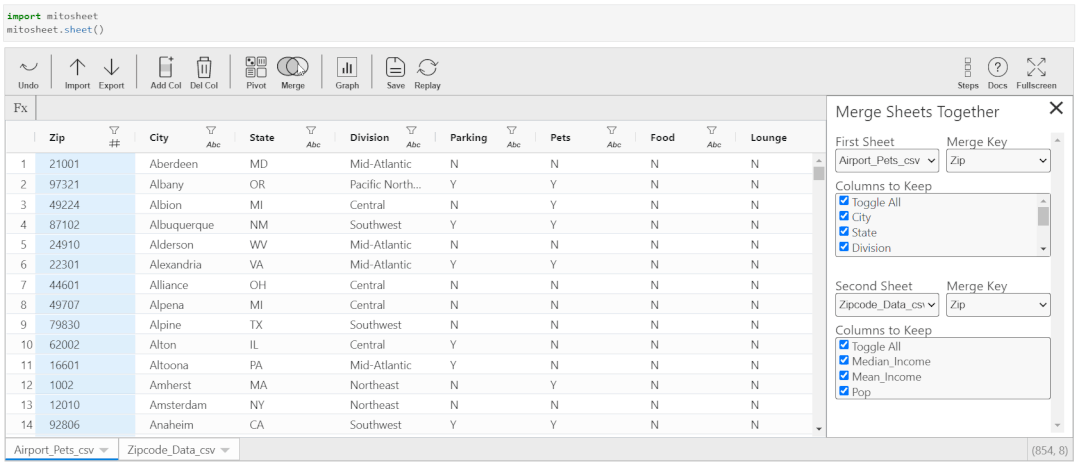 # Imported Airport-Pets.csv, Zipcode-Data.csv