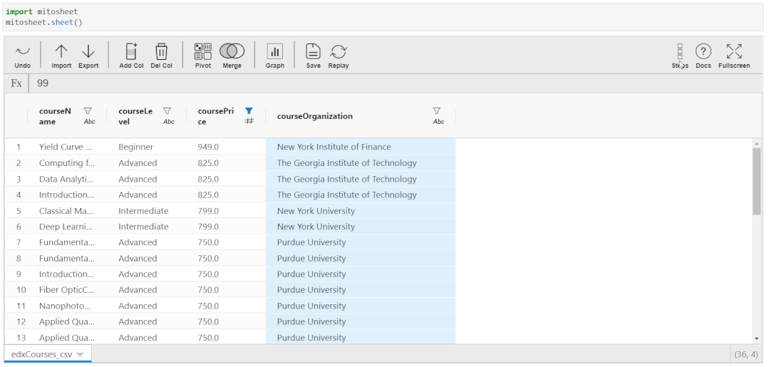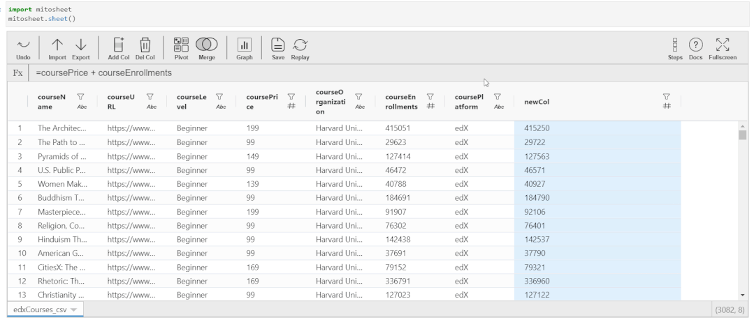 这就是 Mito 的魅力,你在 Mitosheet 中执行的每个操作都将转换为 Python 等效代码!接下来我们一起详细探讨一下 Mito 的所有功能。