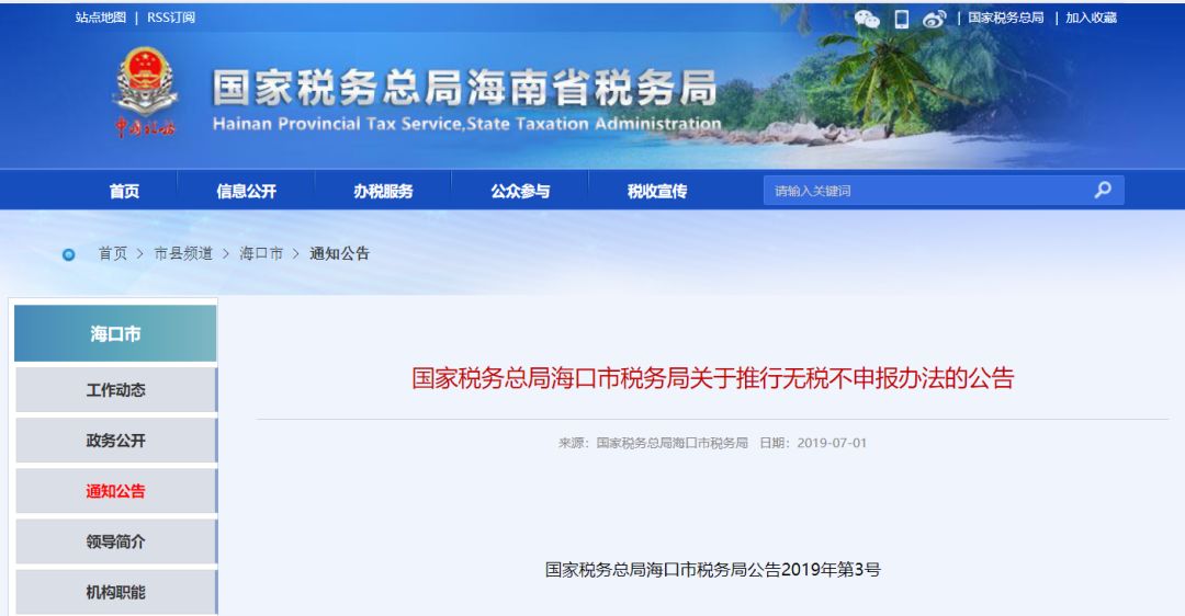 (国家税务总局海南国际旅游岛先行试验区税务局)