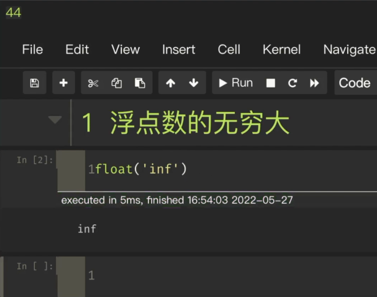 我们直接 float ,里面加上一个 inf 就是 infinity 无穷的缩写,这样就可以获得浮点数的无穷大了。