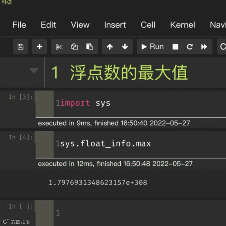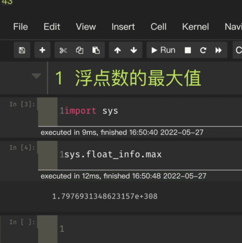 我们首先 import sys这个包,import 完了之后,用 sys. 里面的 float_info,然后再用它的 max 这个函数。