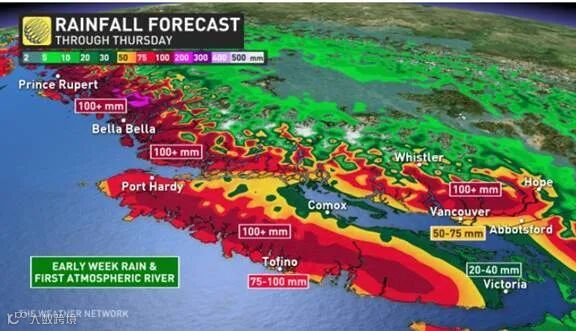 根据气象网络(The Weather Network)的最新报告,就在本周,将会有2场“大气河流”紧接着登陆BC,大雨降至!