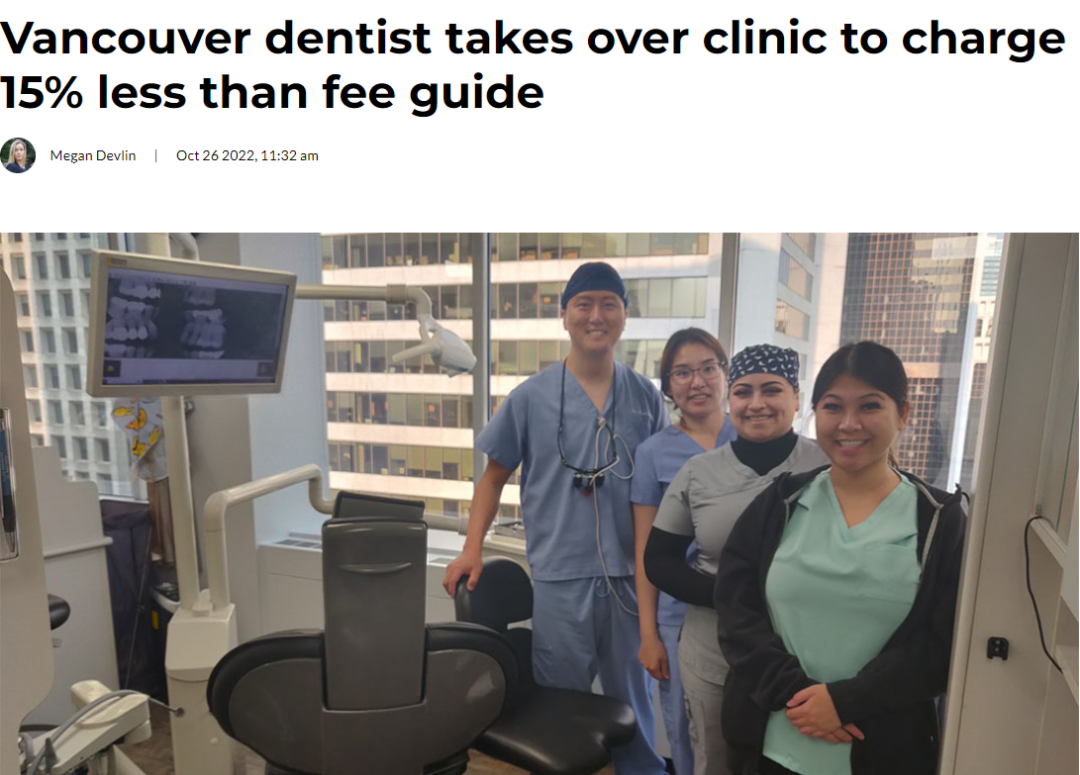 温哥华今天也有好事,不过跟政府没关系:一位名叫Ryan Eom的牙医最近在市中心开了间诊所,费用比BC牙科费用指南中建议要低15%。