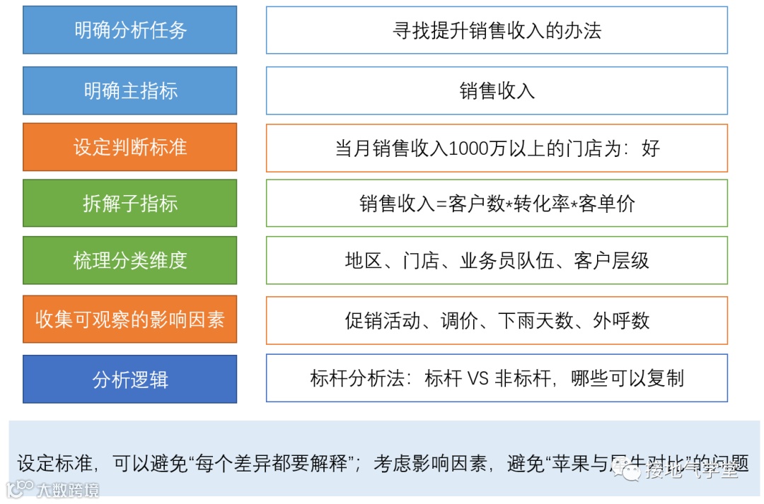 结果是:在缺少逻辑,缺少假设的前提下,对比越多,思路越乱。经常干出来苹果和犀牛对比的囧事。而且这种漫无目的的交叉,经常把业务思路带歪。业务部门会抓着你,让你一句句解释:为啥这里差异5%,那里差异3%,最后思路越搞越乱……