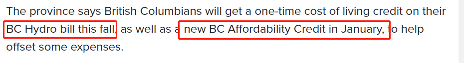 从今年秋天开始,所有BC省民都将获得一次性的“生活成本信贷”!且在2023年1月份获得新的BC负担能力信贷(BC Affordability Credit),帮助人们抵消开支!