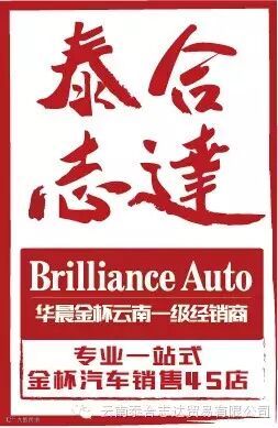 云南泰合志达贸易有限公司成立于2009年2月,注册资金500万元,于11月底俊工,专门从事华晨金杯系列产品的整车销售、汽车维修、备件销售、信息反馈于一体的国际标准全功能4S店。是沈阳华晨金杯汽车有限公司在云南省授权的一级经销商。