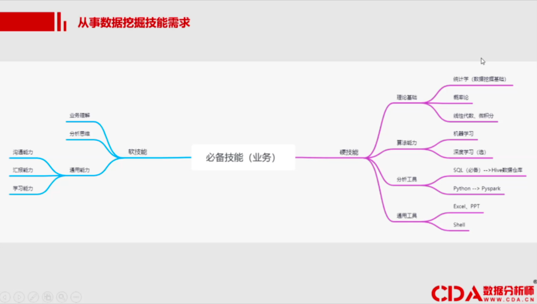 第二部分是关于目前从事数据挖掘,主要针对商业数据挖掘所需要掌握的一些技能;