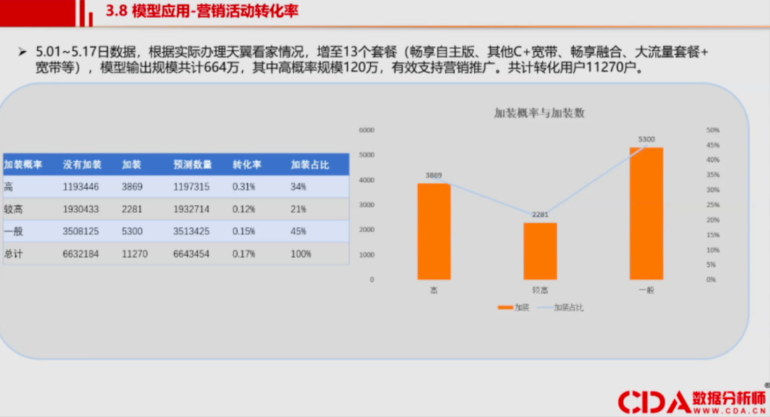 预测用户可能是比较高概率的用户,在将来的一段时间可能是一到两个月,预测家装的用户中的加装比例,也就是营销活动的转化的情况。