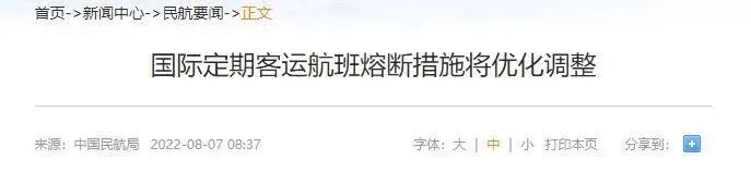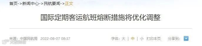 根据8月7日民航局发布的通知,对国际客运航班熔断措施进行优化调整。