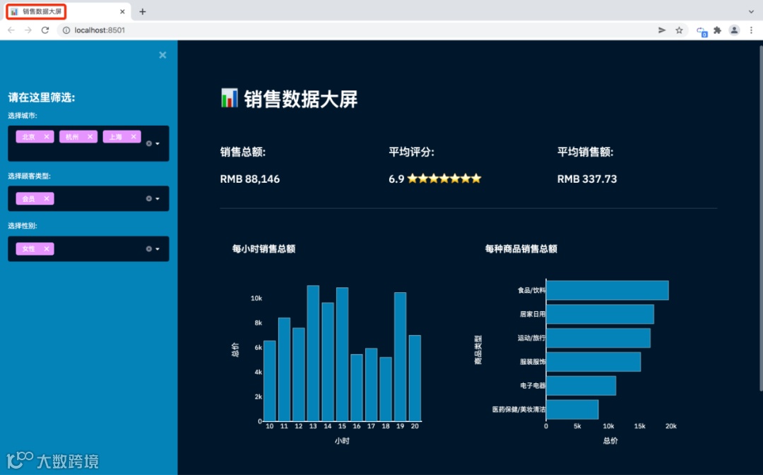 今天就给大家介绍一个用Python制作销售数据大屏的方法。