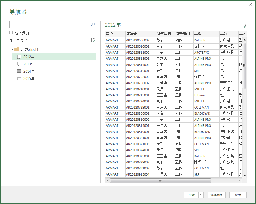 年底到了,我想把公司历年的销售明细和指标等业务数据放在一起透视做分析,觉得这样很方便,但是无奈一张表就50多万行,好几年的数据加在一起有两三百万行,受 excel行数限制,我只能将数据按年分开,一年一张表,每张表里的表头项目都是一样的。
