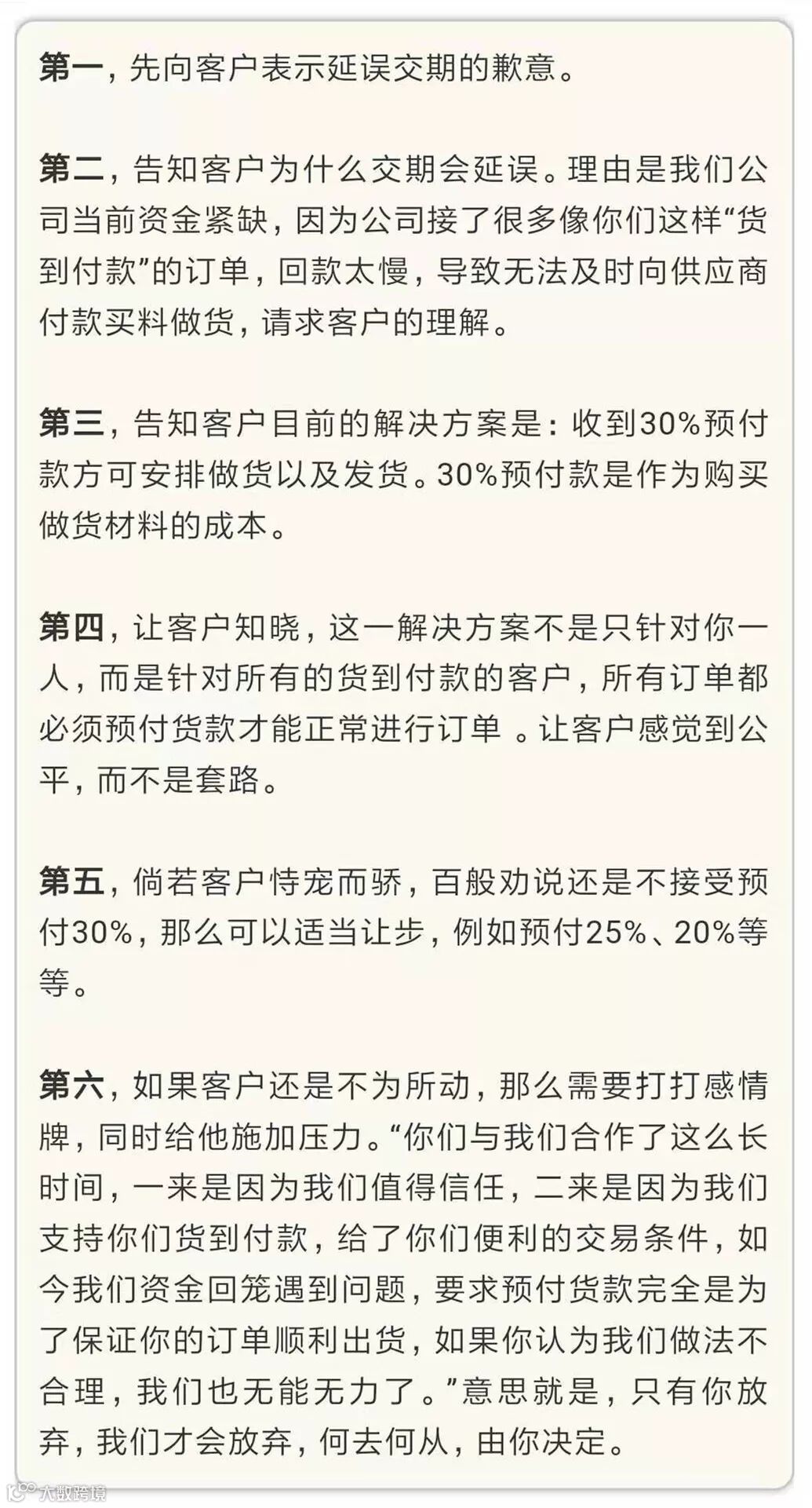 如此跟客户沟通,不仅可以把压力抛给客户,还可以为公司要求预付款找到合适的理由。