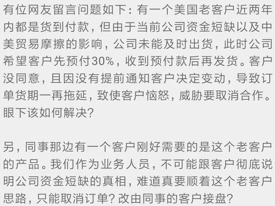 倘若公司真的因为经营不善导致资金紧缺,那我们业务员为何不把问题抛给客户呢?