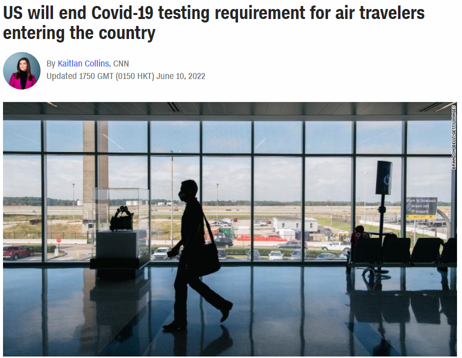 与此同时,美国也大开边境,表示将取消入境前阴性证明。