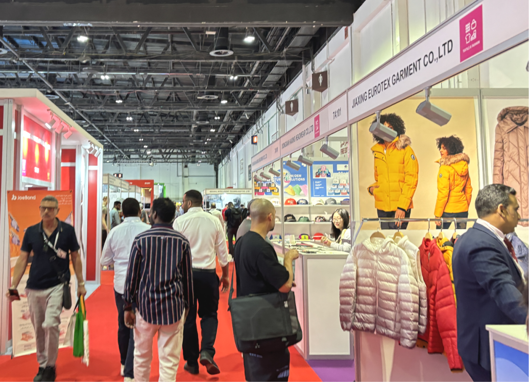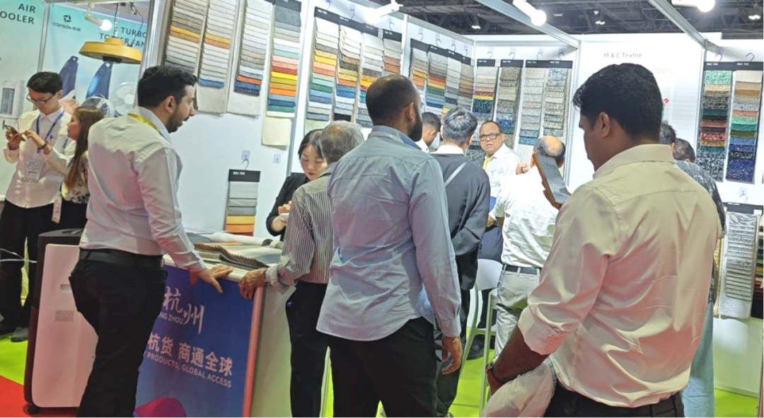 本届展会汇聚了来自浙江、广东、江苏、安徽等省份的逾200家企业,集中展示“中国织造”的卓越实力。包括生锦泰纺织品、世纪柏拉途科技、来福皮革、露恩服饰、天姿箱包、博纳莎家居、纤色间纺织科技、和亨袜业、麦地郎进出口、三莱纺织科技、恒达升工贸、优依达制衣、佰漾纺织品、金贝勒体育用品、亚美意实业、必得福医卫科技、一哥纺织、扇青纺织品、中恒时尚国际贸易、华悦纺织、哈贝多儿童用品、雅霏国际贸易、蔚途防护科技、织缕纺织、金圣斯箱包、沐童设计、恒群贸易、丰裕纺织科技、腾狮织造、聚衣堂服饰、华辰新材股份、泛亚橡塑新材料、永昌达手袋、春风羊绒、海兴帽业、文桑针织科技股份、深睡眠纺织科技、舒心家纺、同翔化纤、民旺进出口、常青树纺织、古娅服饰等企业悉数亮相迪拜,共拓中东商机。