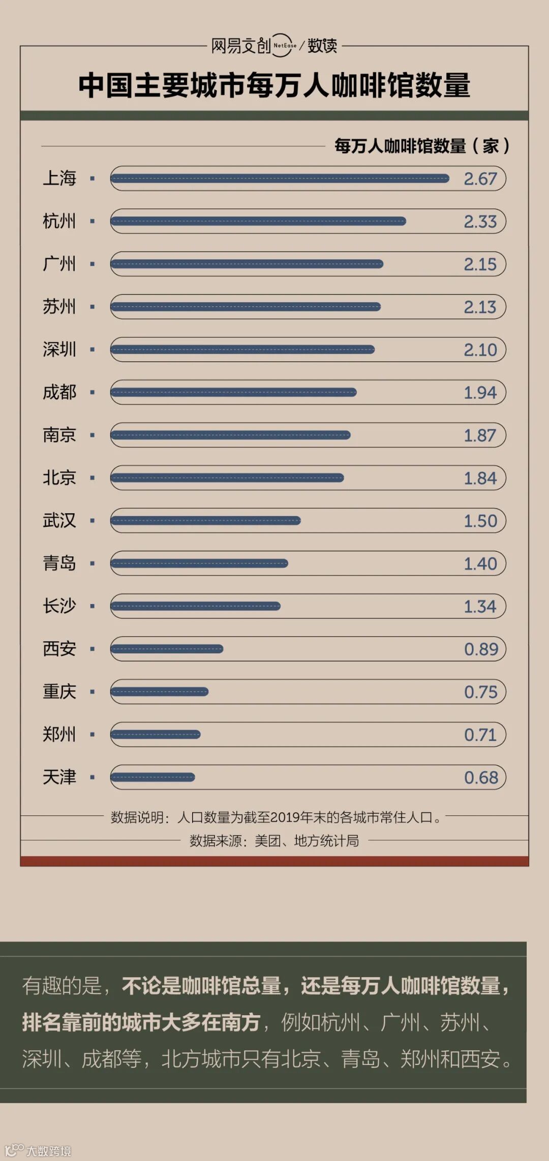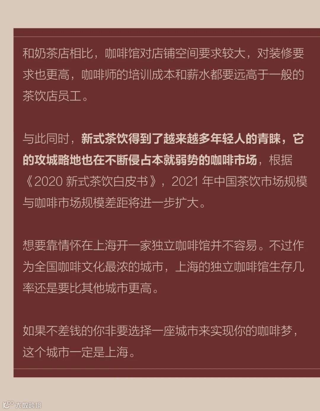 1、上海是全中国拥有最多咖啡馆的城市,每万人咖啡馆数量也最多。