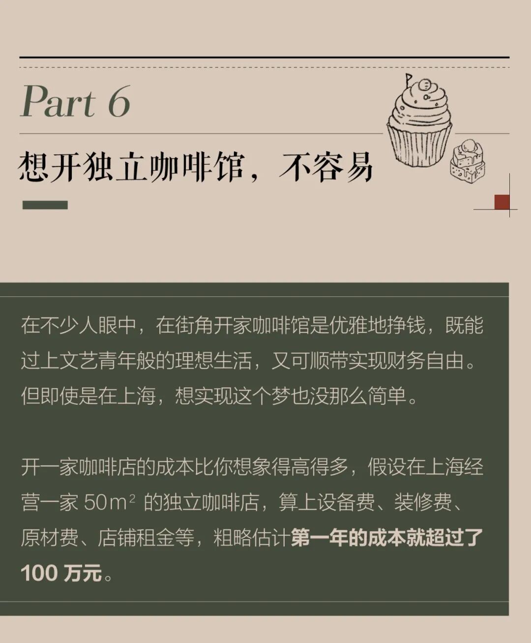 6、经营一家独立咖啡馆的梦想不好实现,成本非常高,又受到新式茶饮的挤压。