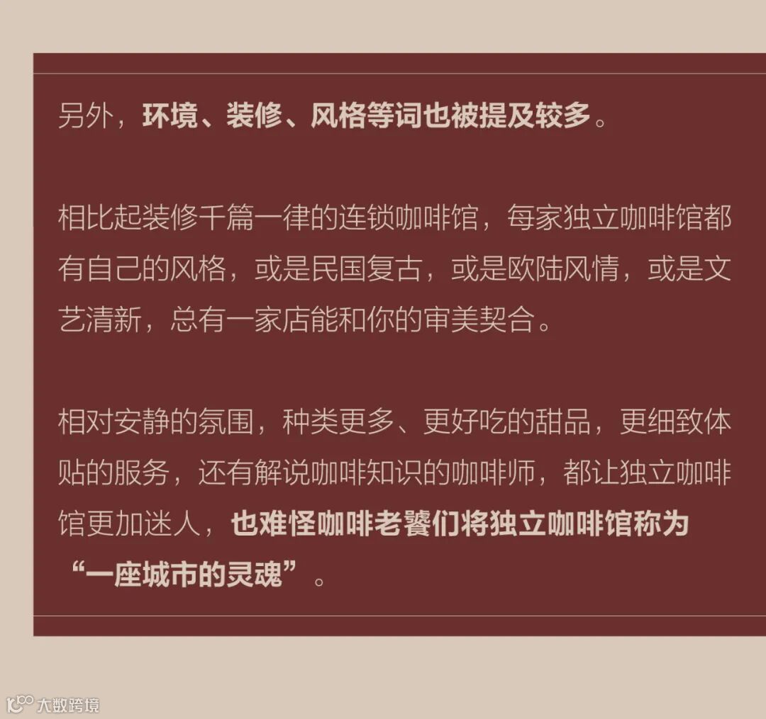 5、独特的口感和环境、风格,是大家想去独立咖啡馆消费的重要原因。