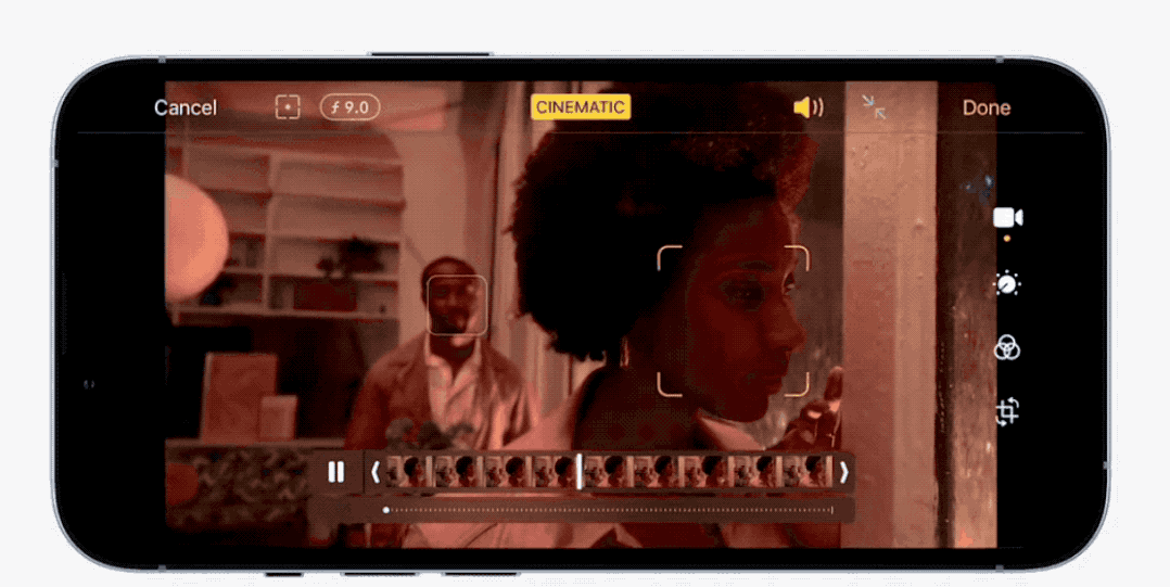 Pro的电影效果模式增加了编辑景深的功能,哪怕是已经拍摄完的那种。