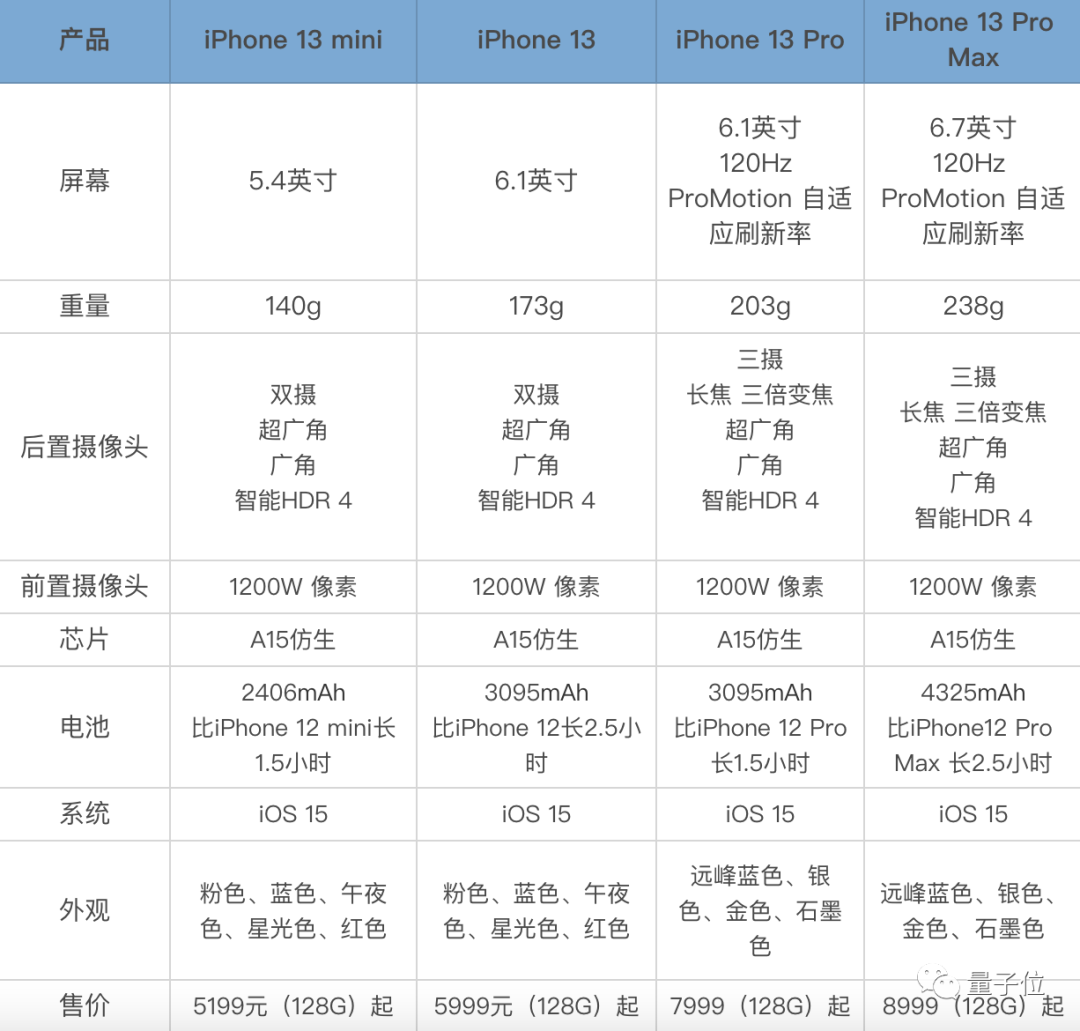 与iPhone 12系列相比,iPhone 13 mini和iPhone 13最低配降价300,容量还从64G升到了128G,同等存储容量下最多降价800元;Pro系列最低配也直降500和300元。