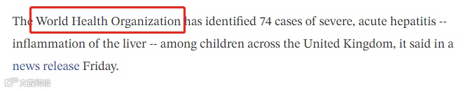 据世界卫生组织(WHO)通报,截止上周五,英国报告了74例感染肝炎的病例,发病患者主要为11个月至5岁之间的儿童,临床综合征是急性肝炎,症状为:肝酶显著升高、黄疸、腹泻、呕吐和腹痛。