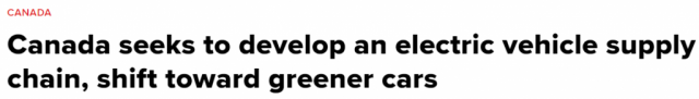 此外政府已与行业参与者会面,以制定一项战略,希望使锂、钴和镍等加拿大矿产成为北美电动汽车生产的关键。