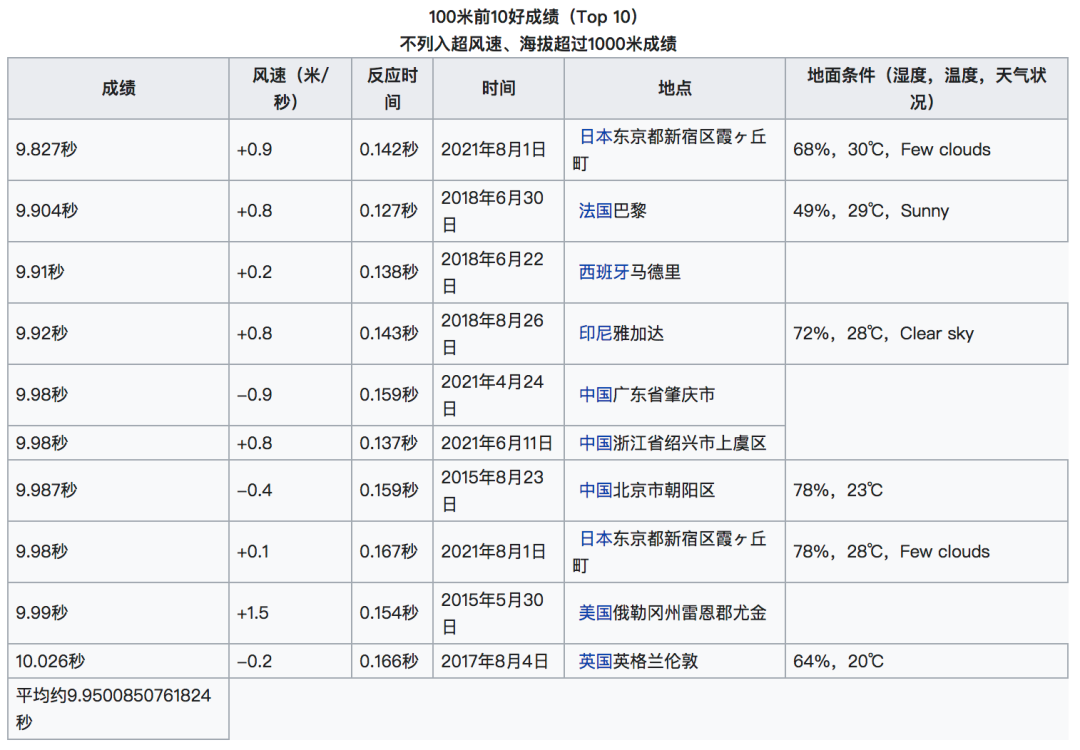 跑进10秒大关就更难了,亚洲运动员中,仅有7人在百米大赛中跑进10秒。