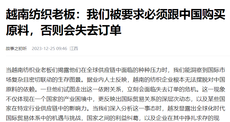 这无疑是纺织中间体企业开拓越南市场的巨大福音!